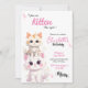 rendez votre prochain anniversaire spécial avec cette belle invitation d'anniversaire inspirée par un chaton rose pastel.