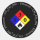 Farbkodierter MSDS-Aufkleber für Ethanol mit molekularer Formel. Graue Schrift auf schwarzen Aufklebern.