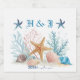 Celebrate your seaside nuptial with this elegant watercolor wine label. Featuring a delicate coastal scene of starfish, seashells, and coral in soft blue and sandy tones, this design is perfect for beach weddings, tropical destination receptions, or nautical-themed bridal showers. Easily customize the initials and date to make it uniquely yours.