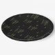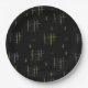 Gelbe, bordeauxfarbene und weiße Schnörkel und Linien in einem Wiederholmuster auf schwarzem Hintergrund suggerieren ein Gefühl von Bewegung und Energie.