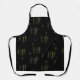 Gelbe, bordeauxfarbene und weiße Schnörkel und Linien in einem Wiederholmuster auf schwarzem Hintergrund suggerieren ein Gefühl von Bewegung und Energie.