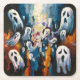 Das Bild zeigt ein rundes Muster mit abstrakten Formen, die an Geisterfiguren in Weiß mit schwarz-braunen Akzenten erinnern, was einen kaleidoskopischen Effekt erzeugt.