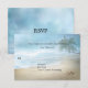 Hübsches Thema Hochzeit Reaktion RSVP-Karte mit Grafiken einer Sandstrand-Szene, mit Sternfisch, Palmen, und ein fantasievoller Blick auf das Wasser und den Himmel. Schwarzer Text ist vollständig anpassbar. Perfekte RSVP Karte, um unsere Fantasy Beach Theme Hochzeitseinladungen zu erfüllen.
