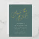 Elégant mariage enregistrer les cartes de date en mousses molles vert fonction "enregistrer la date" dans luxe rose en feuille d'or écriture en haut. Personnalisez avec vos détails mariages en lettres blanches classiques.