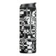 An abstract black-and-white composition featuring the names of Ethiopian cities written in Amharic, expressing urban diversity and cultural identity through layered typography and geometry.