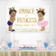 Das Geschlecht enthüllt ein Babyduschbanner mit bezaubernden, ethnischen Prinzen- und Prinzessenbabys, die hübsche Goldkronen auf hübschem Glitzer tragen. Sie können mit dem Text Ihrer Wahl personalisieren, und Sie können eine Hintergrundfarbe zu diesem bezaubernden Geschlecht zeigen Baby Dusche Banner hinzufügen. Dies ist ein gedrucktes Design ohne echten Glitzer.