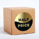 Modernes Rundaufkleber-Design mit а Kreis, aufgeteilt in zwei Teile, von denen einer Gold und der andere schwarz ist. Der Text ist vollständig anpassbar.