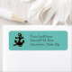Der Anker des Schiffes in Schwarz mit goldener Kontur, vor einem grünem Meeresgrund. Personalisieren Sie Ihre Namen-/Adressinformationen (auch in Weiß).