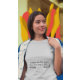 Das Material ist eigentlich gute Qualität, der Stoff ist nur etwas verzogen so dass der Drück leicht schief aussieht. Der Druck ist gute Qualität, habe das T-Shirt schon einige male gewaschen.