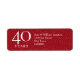 40E ANNIVERSAIRE MARIAGE RUBY ÉTIQUETTE DE ADRESSE. Date, nom et adresse de l'anniversaire défini dans un élégant texte blanc sur un arrière - plan de coeur rouge rubis.