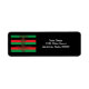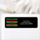 Un étiquette de courrier Kwanzaa qui énonce les sept principes de la fête et leur signification dans les couleurs du vert, du noir et du rouge