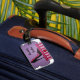 Haut talons de talon de talon rose et noir branché, sur une boîte de chaussures rose et fushia. Très coriace et une étiquette absolument fabuleuse à bagages.