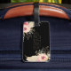 Étiquette À Bagage Aquarelle Boho Floral sur noir | Monogramme chic