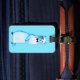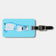 Drôle étiquette de bagage furet avec une aquarelle illustrant un mignon ferret blanc qui a une cravate arc et un monocle. Ce joli design de furet a une couleur arrière - plan personnalisable bleu clair joyeux.
