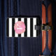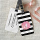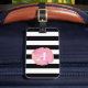 Le marqueur de bagage comporte des rayures blanches et noires modernes, propres, avec votre original ou monogramme à l'intérieur d'une tache d'aquarelle rose. Customisez le dos avec votre nom et vos coordonnées.