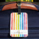 Ajoutez un nom et une initiale à cette étiquette de bagage couleur arc-en-ciel coloré rayures pour créer un cadeau de vacances unique ou offrez-vous une étiquette de bagage monogrammée brillante et audacieuse pour votre prochaine aventure.