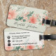 Étiquette À Bagage Aquarelle Pêche Fuzz Fleurs vertes Nom du script
