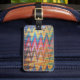 Marque de bagage couleur arc-en-ciel en motif Swoon. Comme ce motif est imprimé deux fois, la transparence des couleurs donne de la profondeur d'impression et crée de nouvelles couleurs. Customisez-le avec votre nom et vos coordonnées.