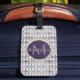 Un élégant motif en harlequin de diamant blanc et rose chatoyant avec une sphère violette au milieu de la verrière glamour, où vous pouvez le personnaliser avec une lettre et un nom. Des vibes chic branchées.