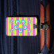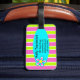 Vous cherchez une étiquette de bagages rose mignonne pour le voyage? Ce design fabuleux présente des rayures vert citron et rose chaud avec des rayures blanches plus petites dans l'arrière - plan. Au premier plan, est une jolie fleur rétro en bleu turquoise, rose chaud et blanc entourée de quatre fleurs plus petites. L'arrière de cette étiquette de bagage de voyage présente les mêmes grandes rayures avec un ovale bleu turquoise où votre nom peut être personnalisé avec toutes vos coordonnées. Il y a même une autre fleur mignonne pour faire une grande étiquette de bagage pour les filles, pour les ados ou pour les femmes. Copyright Kathy Henis