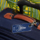 Marque à bagages bleu foncé avec des graphiques d'une pieuvre blanche, sur l'avant et texte blanc personnalisé, sur l'avant et l'arrière.