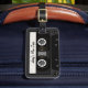 Mettez votre nom sur cette étiquette de bagage pour lui faire votre très propre bande de mélange. Elle ressemble à un enregistreur à cassettes, combien rétro.