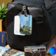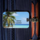 Bibliothécaire à la retraite, palmier sur la plage, étiquette bagage.