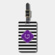 Motif à rayures noir et blanc, Étiquette violet Monogramme Un motif à rayures classique, chic et design en noir et blanc. Customisez le étiquette violet avec votre monogramme, nom ou autre texte. (Cliquez sur "Customiser" pour ajuster les tailles de police, les couleurs, etc.) 2013 ©FantabulousPatterns Tous droits réservés