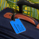 Balise de bagage avec nom et adresse sur une couleur arrière - plan bleu azur solide. Personnalisez avec votre nom et vos informations d'adresse en utilisant les modèles faciles. La couleur de police, le style de police et la taille de police sont personnalisables.