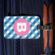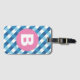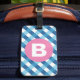 Étiquette À Bagage Blue and White Plaid Checked Pink Monogram