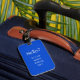 Cette étiquette de bagage vous aidera si tout va bien rapidement à identifier votre sac. Elle est bleue lumineux et lit, "bonjour ? Est elle je que vous recherchez ?" Haha. La conception est d'un côté ; l'inverse est une fente pour votre identification ou carte de visite personnelle.