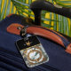 Un briquet doré au design marbré, avec des détails complexes et un cadre circulaire.