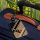 Bandes diagonales noires et brunes avec un petit avion, nom personnalisé et lettre initiale... cool pour le voyageur élégant.
