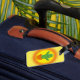 Plante de désert en forme de dessin animé par jour ensoleillé. Balises de bagages personnalisées. Idée cadeau pour les enfants.