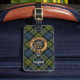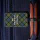 Le badge Campbell crest entouré d'une sangle et boucle sur l'arrière - plan tartan. Texte personnalisé des deux côtés.