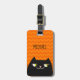 Drôle, mignon, moderne, kawaii étiquette de bagages de chat noir avec nom à l'avant et adresse de retour. Un cadeau parfait pour n'importe quel amoureux des chats !