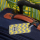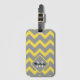 Étiquette À Bagage Chevron jaune gris motif lignes rayures Monogramme