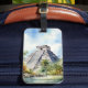 Belle étiquette à bagages avec Chichen Itza, Mexique. Belle pyramide d'El Castillo, ruines de l'Empire Maya.