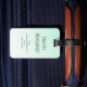 Une étiquette de bagage avec une merveilleuse illustration fantaisiste. Un grand hibou brun aux yeux portant un chapeau vert et une cravate d'arc.