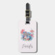 Une étiquette de bagage avec l'image d'une paire de chouettes amoureuses assis ensemble sur une branche d'arbre. Entouré de jolies fleurs bleues, vertes et roses.