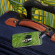 Joyeux Collie noir et blanc jouant dans l'herbe longue.