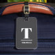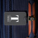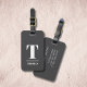 Elégant design entièrement personnalisable étiquette de bagages avec arrière - plan gris foncé, blanc gras monogramme.