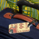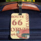 Une illustration d'une Corvette 1962 sur une étiquette de bagage.