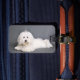 Ce chiot adorable de Tulear de coton s'est reposé pour son premier juste de séance photos après le toilettage.