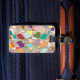 Une tapisserie confetti de couleurs forme ce design abstrait. Arrière - plan en feuille or pâle.