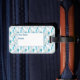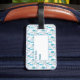 Une belle étiquette de bagage personnalisée à coudre bleue avec machine à coudre, mannequin tailleurs, fils ciseaux, bobines et épingles motif sans soudure sur un arrière - plan blanc. Un grand cadeau pour n'importe quelle quilter ou égout pour montrer leur amour de la courtepointe et de la couture pendant qu'ils voyagent dans le monde. Personnalisez avec le nom et les coordonnées. pour en faire un cadeau spécial supplémentaire.