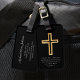 Tag de bagage Croix Noire moderne. Personnalisez-le au dos avec votre nom et vos coordonnées. La Bible Verse Psaume sur le devant dit : Psaume 91:11 "Car il commandera ses anges à ton sujet de te protéger de toutes ses manières."