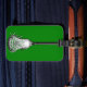 Sac à lacrosse cool avec une étiquette comportant un design de bâton et de balle de crosse pour joueur de crosse, entraîneur ou fan de l'équipe verte.