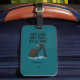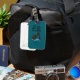 A stylish luggage tag featuring a fashionable woman pulling her suitcase with the fun caption “JET LAG, WET BAG, STILL FAB.” Add your own initials for a personalized travel gift. Perfect for globetrotters, birthdays, holidays, and fabulous travelers who love unique gifts.