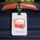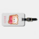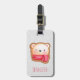 Une étiquette de bagage avec un visage d'ours adorable et mignon sur une base de biscuits. Portant un foulard rayé rouge et blanc.